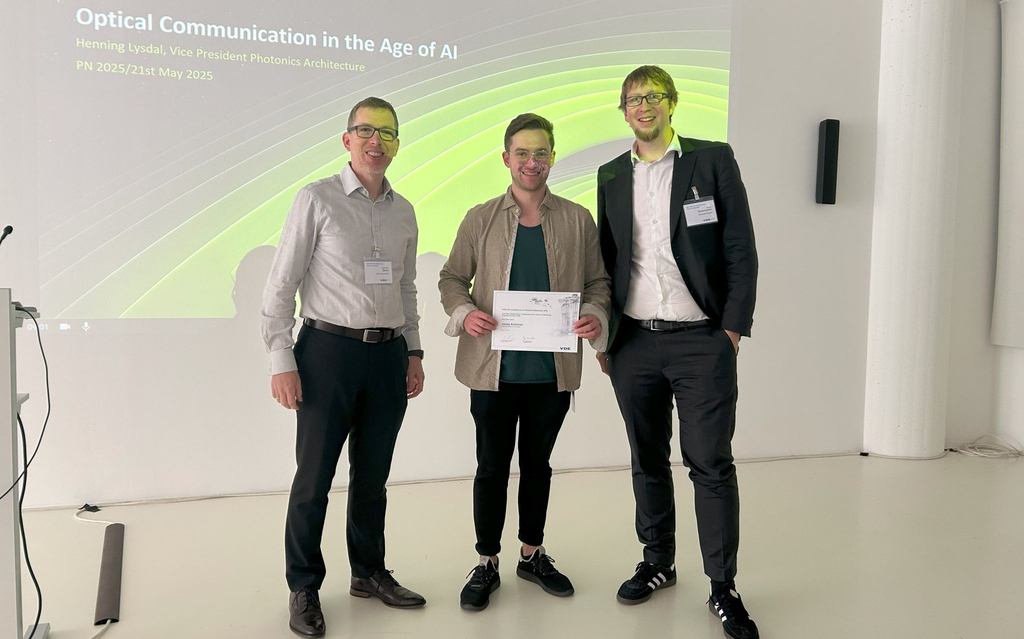 Jonas Krimmer, a PhD candidate at IPQ, has been awarded the best poster prize at the 2025 VDE ITG Conference on Photonic Networks.
