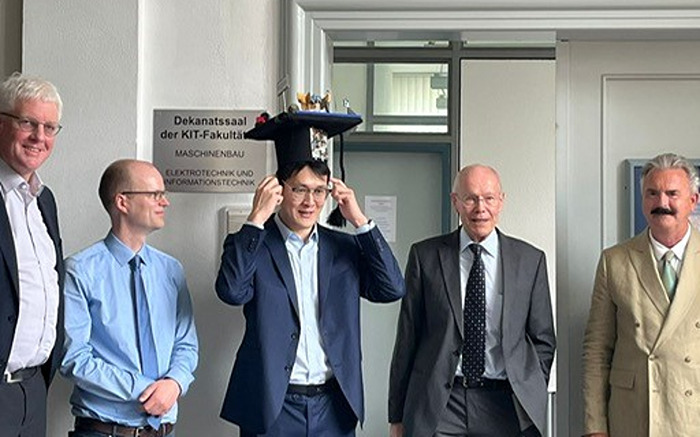 On June 4, 2025, Dengyang Fang from Prof. Christian Koos' group successfully defended his PhD thesis with the title "Ultra-Broadband Photonic-Electronic Signal Processing Using Spectral Multiplexing in the Optical Domain" with the best possible grade.